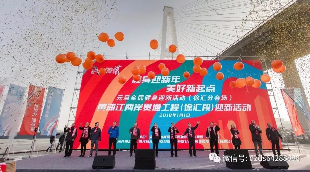 2018年元旦清晨,由徐汇区体育局和西岸集团主办的"健身迎新年·美好新起点"黄浦江两岸贯通工程(徐汇段)迎新活动,在徐浦大桥下徐梅路龙腾大道节点广场隆重举行。大众交通(集团)旗下的"大众滨江"参加了此次活动。