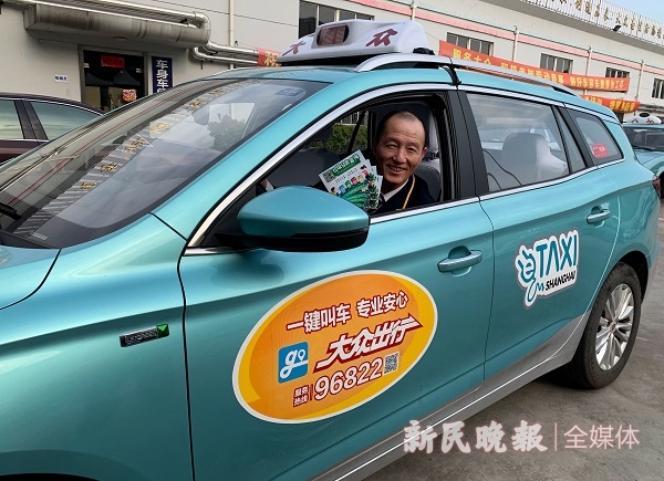 图说:从今天起,由上海“最美的哥”张国青领衔的大众老克勒雷锋班组将免费向乘客发放“垃圾分类冰箱贴” 新民晚报首席记者 曹刚 摄