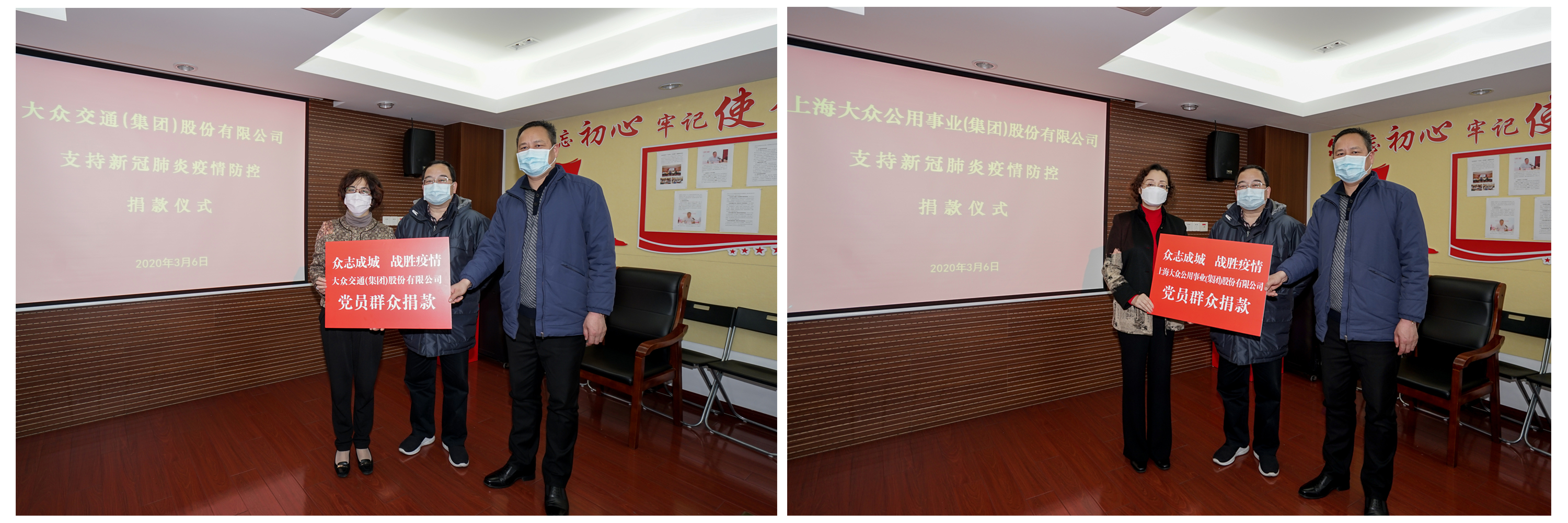 3月6日,大众交通、大众公用两家上市公司的党组织书记一同前往田林街道,将大众党员、群众的爱心捐款分别交给田林街道党工委和田林社区基金会。