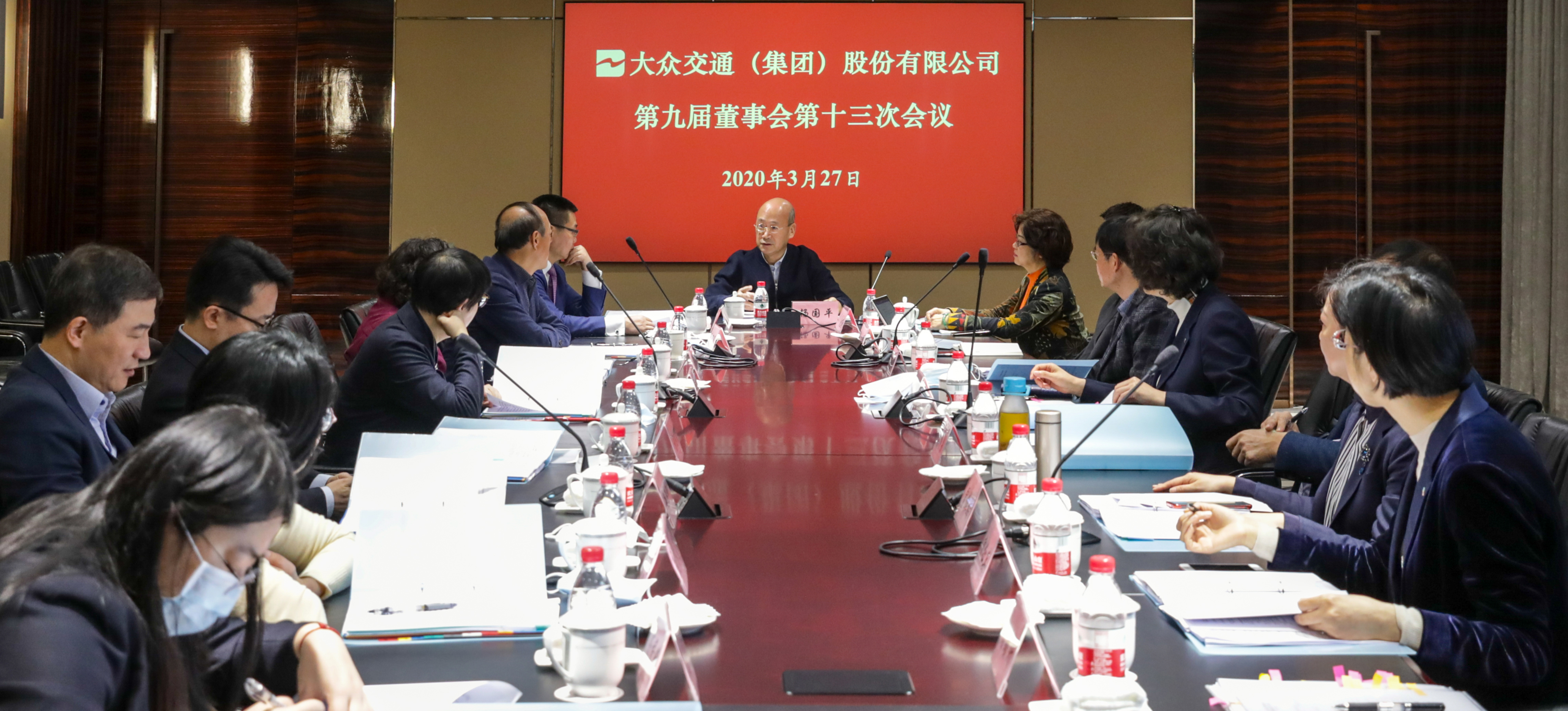 大众交通(集团)股份有限公司于2020年3月27日上午在大众大厦21楼会议室召开公司第九届董事会第十三次会议,公司全体董事参加了会议,公司监事列席会议,会议审议18项议案并一致通过了如下决议:《2019年度董事会工作报告》、《2019年度报告及年度报告摘要》、《2019年度财务决算及2020年度财务预算报告》、《2019年度利润分配预案》、《2019年度内部控制评价报告》、《2019年度社会责任报告》、《关于公司聘任财务总监的议案》、《关于公司2020年度对外担保有关事项的议案》、《关于公司发行债务融资工具的议案》、《关于会计政策变更的议案》、《关于授权经营班子参与金融市场运作的预案》、《关于公司2020年度日常关联交易的议案》、《关于公司以集中竞价交易方式回购公司A股股份的议案》、《关于公司修订<内幕信息及知情人管理制度>的议案》、《关于公司债授权延期的议案》、《关于续聘会计师事务所的议案》、《关于续聘内部控制审计事务所的议案》、《关于召开2019年度股东大会的议案》。