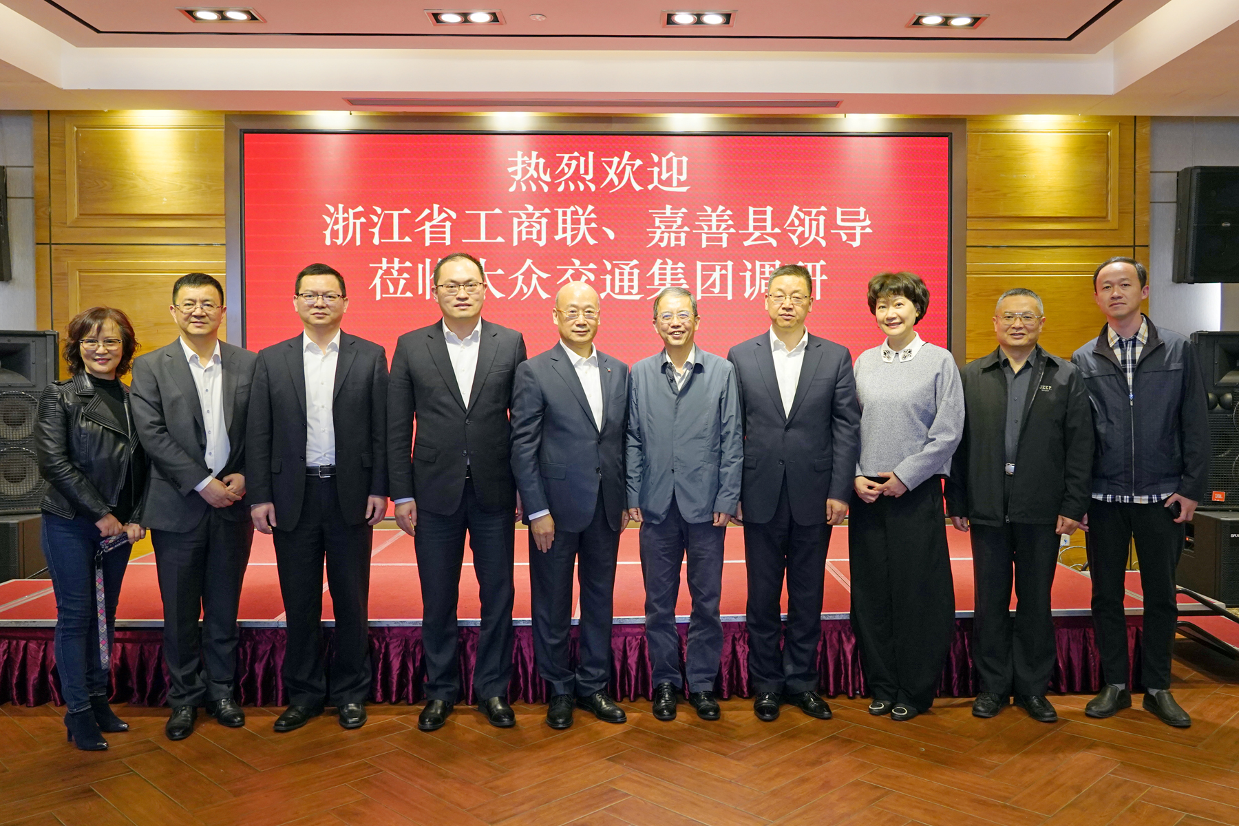 4月18日,浙江省工商联、嘉善县党政领导一行来到大众交通集团调研,嘉兴市委常委、嘉善县委书记洪湖鹏,浙江省工商联二级巡视员吴永平,嘉善县委副书记、县长徐鸣阳等领导参加座谈。