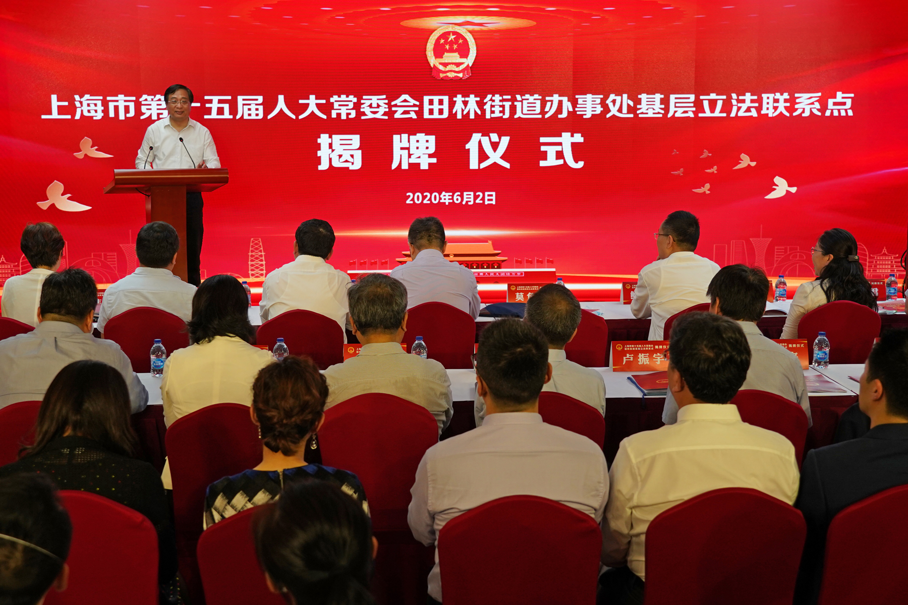 6月2日,徐汇区田林街道办事处基层立法联系点在街道党群服务中心揭牌。市人大常委会副主任莫负春,市人大常委会委员、法制委员会主任委员陆晓栋,市人大法制委员会副主任委员、常委会法工委副主任阎锐,徐汇区区委书记鲍炳章、区人大常委会主任李新华等领导出席揭牌仪式。