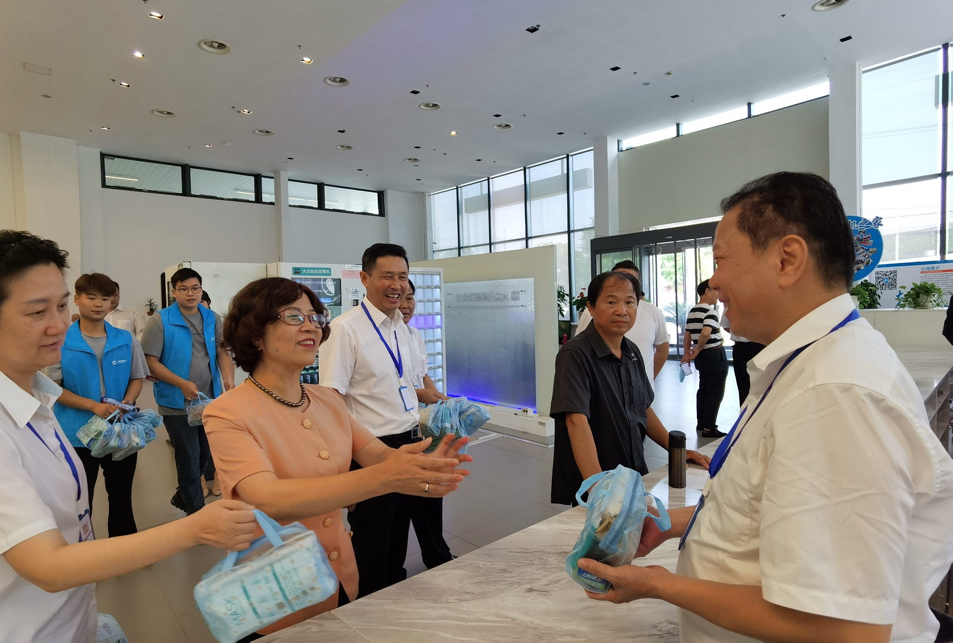 7月23日,大众交通集团副总裁董继缘、大众出租租赁总经理王培红先后赴大众出租环球金融中心站点以及出租租赁浦东分公司,为基层员工送上毛巾、花露水等防暑降温用品。