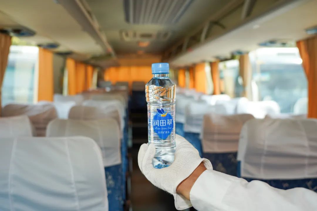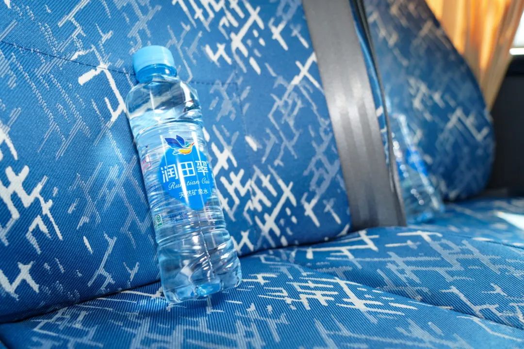 干净整洁的车厢,冷气全开并为乘客准备了润田翠矿泉水。