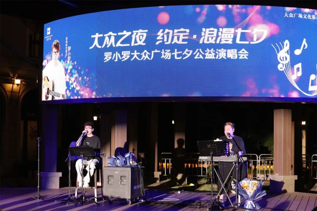 灯光秀点缀800米商业街区,文化市集演绎烟火气息,动感歌声传递甜蜜……8月29日晚上,大众交通(集团)股份有限公司、嘉善经济开发区实业有限公司联合在大众广场举办“大众之夜 约定·七夕浪漫夜”活动,邀请上海知名街头艺人罗小罗到场献唱,并融合互动体验、文化市集,吸引约2000人热烈应援参与,共赴七夕浪漫之约。