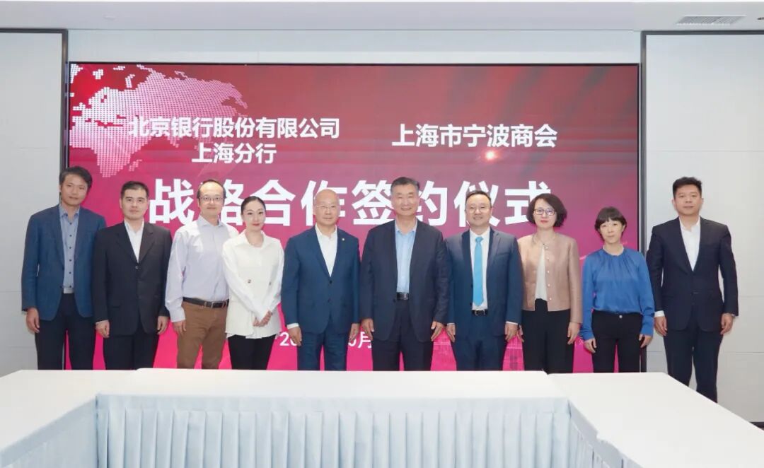 会上,上海市宁波商会党委副书记、秘书长侯承斐与北京银行上海分行行长魏昱代表双方签订战略合作协议,商会会长杨国平与北京银行董事长霍学文共同见证。