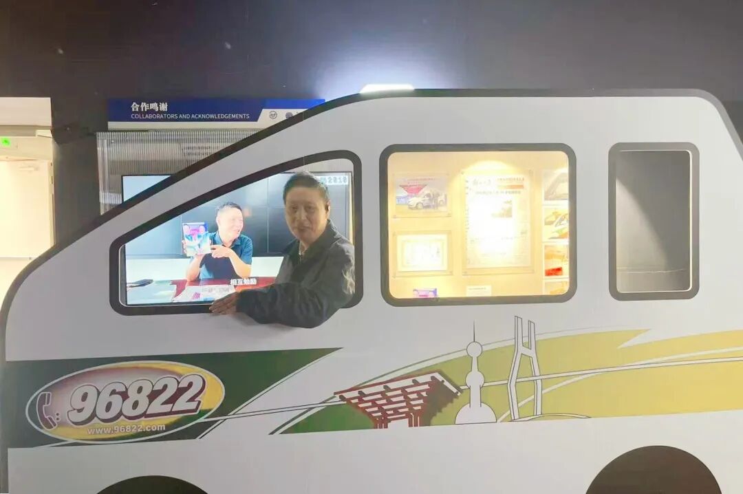 没想到这次座谈会藏着惊喜。展厅深处,一辆世博车静静等候,我特意走进车厢,感觉闻到当年我在车上放着茉莉香薰,走进驾驶室的瞬间,仿佛又听见园区广播里"小白菜"的声音,后视镜里映着同事们互相整理领带的模样。